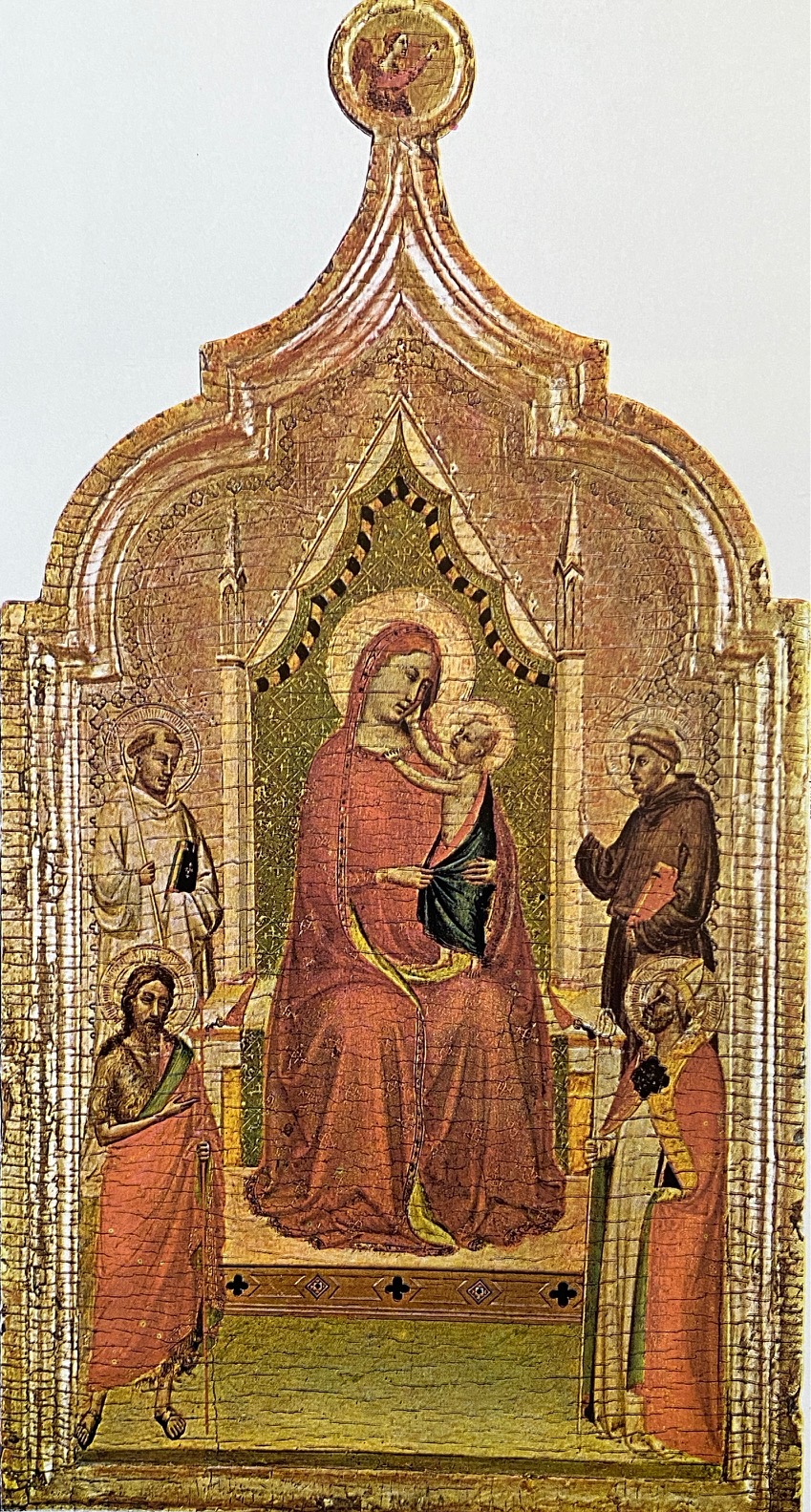Bernardo Daddi, a younger contemporary, absorbed Giotto’s solidity of form while retaining the refined decorative elegance associated with the Siennese school.