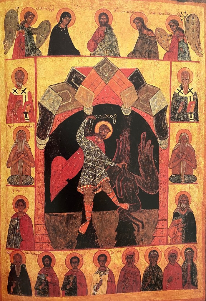 In 1378, according to legend, Theophanes the Greek came to Russian from Byzantium, and painted the Church of the Transfiguration in Novgorod and many others, along with his student, Andrei Rubylev. This period of icon painting is considered by many to be one of the greatest achievements of Russian Iconography.