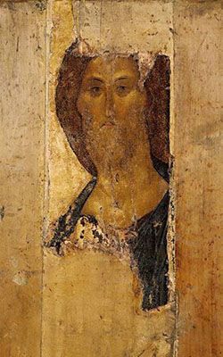 In 1904, a small portion of Andrey Rulev’s Holy Trinity Icon was cleaned of the dark soot that had been its covering for centuries. This one act led eventually to a whole group of Icons in Russia being cleaned and “discovered”, and this, in turn, has largely contributed to the revival in Iconographic interest today. When the Trinity was cleaned and uncovered through restoration, crowds began making pilgrimages to see it.